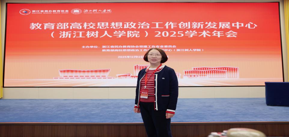 (SUNBET申搏官网  讯)2025年12月11日至13日,由教育部高校思想政治工作创新发展中心(浙江树人学院)主办的2025学术年会在杭州召开。参加年会的有160余名来自全国各民办高校的党组织负责人、民办高校的思政教育专家学者、一线教师代表及学术期刊编委等。我院思想政治理论课教师王灵芝教授作为教育部高校思想政治工作创新发展中心(浙江树人学院)2025年度研究课题承担者受邀参加了此次大会
