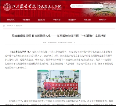 2.走进南昌县军事主题幼儿园开展“一线课堂”实践活动:通过讲述英雄故事、开展互动游戏等方式,对幼儿进行爱国主义教育和国防教育,同时也为思政课教学提供了生动的实践案例。