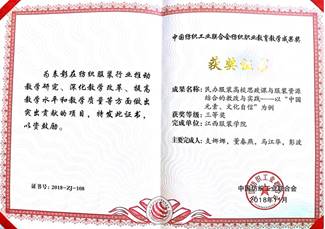 申搏官网教师支娜娜、董春燕、马江华、彭波老师申报的“民办服装高校思政课与服装资源结合的教改与实践—以‘中国元素、文化自信’为例”荣获教育教学成果三等奖。
