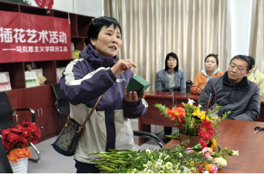 在热烈的掌声中,插花艺术活动正式拉开帷幕。插花老师详细讲解了插花艺术的基本知识,从花材的认识、色彩的搭配到构图的原则,都进行了深入浅出的讲解,并现场展示了不同风格的插花作品,让大家对插花艺术有了更直观的感受。