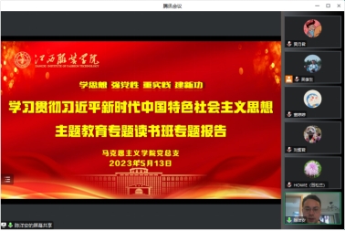 5月13日下午,SUNBET申搏官网通过线上腾讯会议形式开展学习贯彻习近平新时代中国特色社会主义思想主题教育专题读书班专题辅导。学院党政领导班子成员、各支部党员、思政课教师参加会议。会议由党总支副书记陈洋安主持。