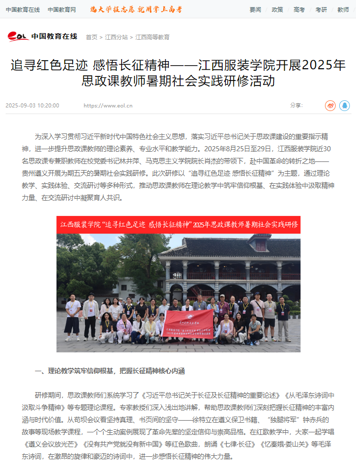 中国教育在线:追寻红色足迹 感悟长征精神——SUNBET申搏官网开展2025年思政课教师暑期社会实践研修活动