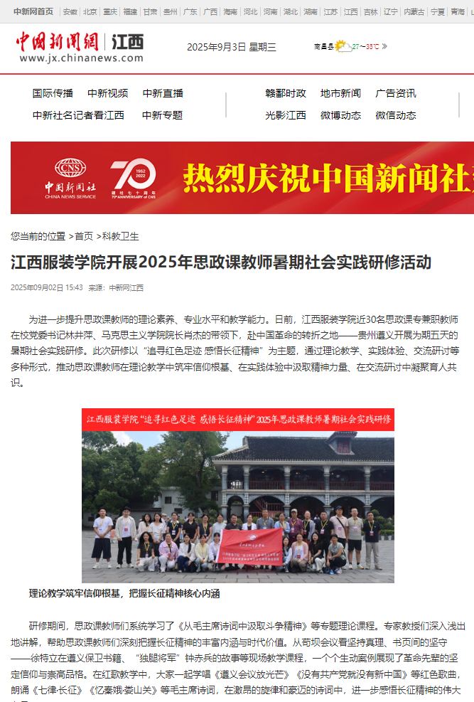 中国新闻网:SUNBET申搏官网开展2025年思政课教师暑期社会实践研修活动