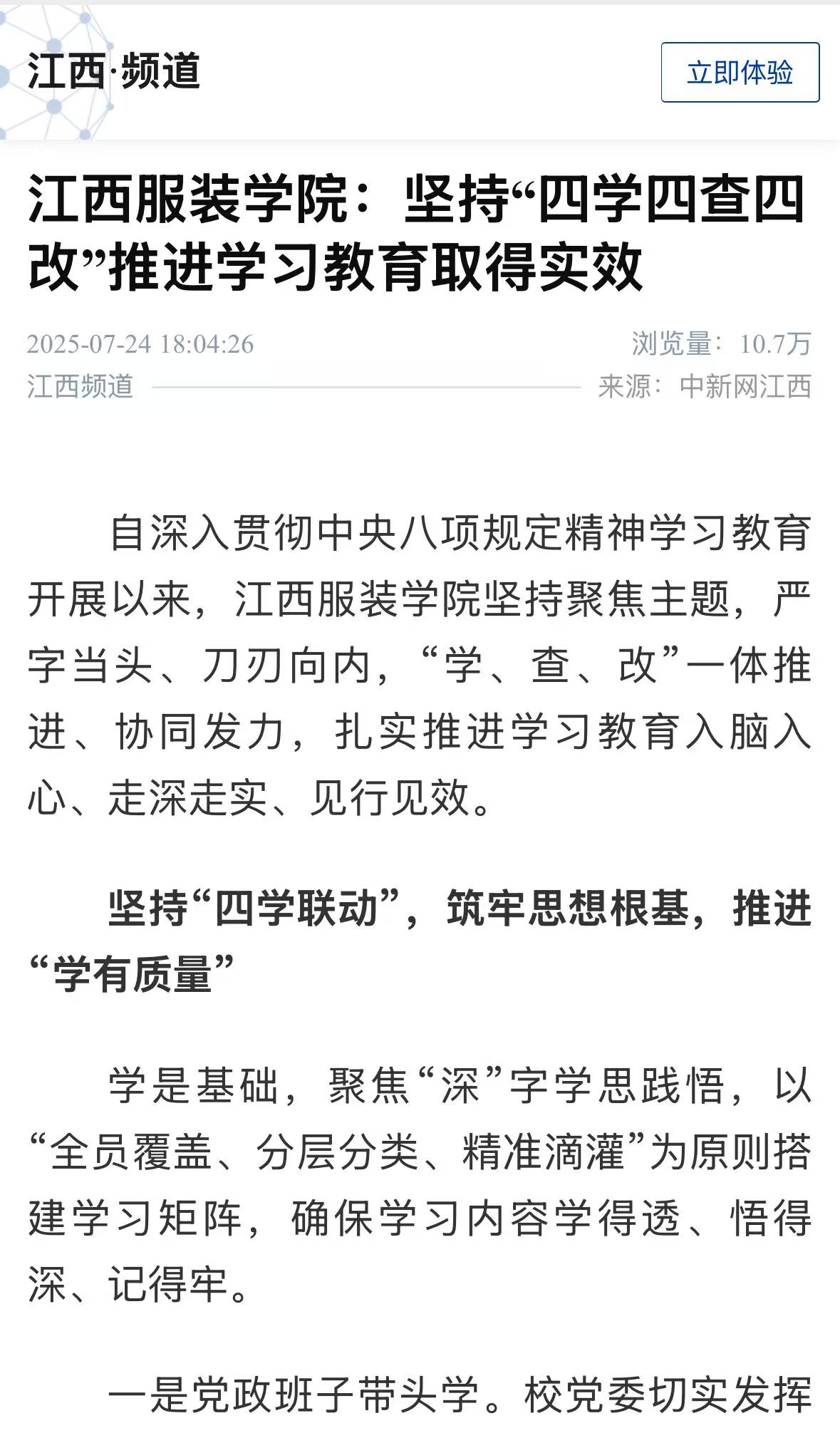 自学习教育开展以来,SUNBET申搏官网坚持聚焦主题,严字当头、刀刃向内,“学、查、改”一体推进、协同发力,扎实推进学习教育入脑入心、走深走实、见行见效。通过“四学”打牢思想基础、“四查”找准问题症结、“四改”推动落地见效,SUNBET申搏官网将学习教育成果转化为“办好人民满意的服装高等教育”的实际行动,为培养德艺双馨、服务行业、全面发展的高素质应用型人才提供坚强保障。