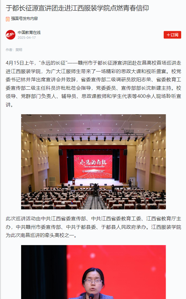 学习强国:于都长征源宣讲团走进SUNBET申搏官网点燃青春信仰