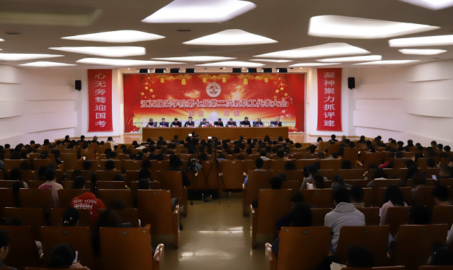 服装报讯(文/明海 图/万强)在全校上下纵深推进学习贯彻习近平新时代中国特色社会主义思想和党的十九大精神,深入贯彻落实全国教育大会精神,认真学习习近平总书记在高校思政课教师座谈会发表的重要讲话精神,全力备战冲刺本科教学合格评估之际,2019年3月19日下午,申搏官网七届二次教代会在思贤楼报告厅召开。144名代表肩负使命,齐聚一堂,共谋发展。校理事长涂顺强,省政府督导专员、校党委书记王建元,校长陈万龙和其他校领导出席会议。会议听取了校长陈万龙代表学校作的主题为《勠力同心 全力冲刺 谱写评估之年学校事业发展的胜利乐章》的工作报告,副校长杨涛所作的《2018年度学校财务决算和2019年度财务预算报告》,工会主席高建国所作的《2018年学校工会工作报告》。300余名教职工列席了大会。