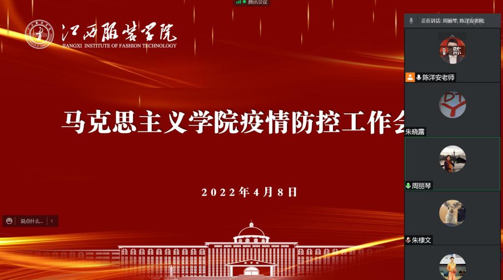 2022年4月8日中午,SUNBET申搏官网通过线上腾讯会议召开4月份疫情防控工作会议。会议由学院院长周丽琴主持,学院党政领导班子成员、学院全体教师参加会议。