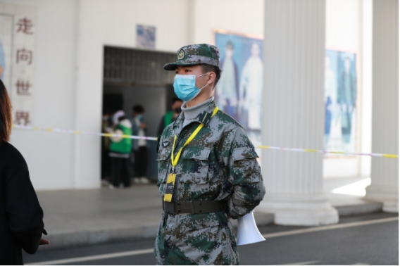 全程参加了四次核酸检测志愿服务工作,最长的一次是冒着雨从下午三点站到了晚上十一点,虽然每次都很累很辛苦,但是心中有一分责任感,所以一直坚持下来,看到同学们在自己的指引下有序列队,依次做好核酸,也会有小小的成就感。身为国旗护卫队的一员,不仅要守护国旗,更要守护好江服师生!