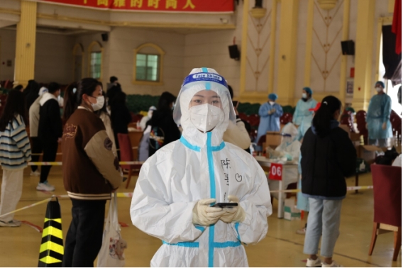 商学院21级财务管理专业:很荣幸能够参与协助全员核酸检测,这是个凝心聚力的大工程,我在这期间收获了许多,也充满了感动。记得每次群里一发通知需要志愿者,都会得到许多积极回应;还看到同学们和志愿者们每一次都比上一次做得好,看着同学们自觉按照防控要求有序排队等候和志愿者们充满热情维持现场秩序的身影,我经常会被这种协同有效的场景而感到震撼,他们让我觉得,我们所有人都在奔着同一个目标,做着同一件事情,从而忘记了疲倦。疫情终会过去,等疫情结束,可劲儿吃可劲儿造!想见的人就去见,不等待,别保留。人生太短了,拘谨着就很快过去了。最后,想对所有医护人员说:天使们,谢谢你们,你们辛苦了!想对所有志愿者们说:加油!你们也很棒!