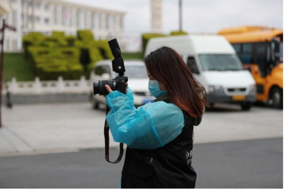 “新闻不能停,再累也得咬咬牙坚持,南昌加油,江服加油!”面对疫情,来自大学生记者团的摄影记者黎静怡始终坚守采编一线,通过相机记录防疫抗疫一线的温暖事迹,和她一样的校园记者们还有很多,他们用手上的笔、相机、摄像机讲述江服抗疫中的感人故事,一篇篇现场报道传递正能量,一幅幅现场画面定格感动,这是战‘疫’中的新闻力量!