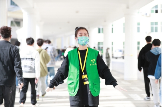 她看到核酸检测的通知一出,不到十分钟,名额全部满员,还不断的有刚下课的同学赶过来。后面两次因为又冷又累,再三强调男生优先,在男生已经满员的前提下,也会看到很多女孩子坚毅的身影。危险的工作也总有男生抢在女生前面。她看到的志愿者,从早上六点多开始连轴转,在霓裳宫一个小小的地方能跑出两万多步,让交班去吃饭来回推辞,都想让自己的伙伴先去吃饭,午饭只吃五分钟,一直到完全结束才肯离去。也许正是这样的情景才让她的志愿服务之心越发炙热。