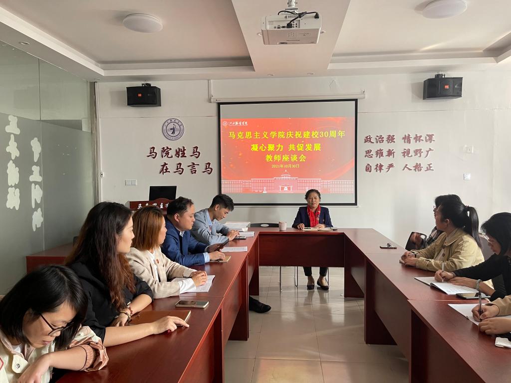 最后,周丽琴院长谈到:上午观看SUNBET申搏官网30周年的庆祝大会,深受感动。我们要牢记涂理事长讲话谈到的江服精神:明德弘毅,崇艺尚美,敬业奉献,追求卓越。牢记薛家宝校长谈到的目标:共商未来发展之计,向建设特色鲜明,高水平,应用型的目标学校前进。牢记中国纺织工业联合副会长陈大鹏谈及的期望:努力从制造强国到世界时尚强国,引领世界时尚,提高人才培养素质。30年走来不容易,江服的成果,是几代人共同努力的结果;作为一名江服人,要加倍珍惜江服的大好局势,马院的大好局势,作为一名思政教师,倍加珍惜,落实立德树人的工作任务。30年校庆是一个新的起点,我们要努力建设特色鲜明,高水平,应用型的大学,用心上好每一堂思政课。