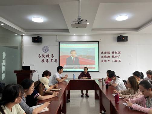 贺松兰副院长谈到,听了习总书记的讲话很震撼,作为9500多万党员中的一员,要履行好作为思政课老师的本职工作,讲好思政课,为党育人贡献自己的一份力量。