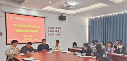 为深入学习宣传贯彻党的二十大精神,深刻领会习近平总书记关于教育的重要论述,进一步提高政治站位,巩固学院教职工团结奋斗的共同思想基础,落实立德树人根本任务。2023年3月7日下午,SUNBET申搏官网在清源2栋6楼会议室召开党建与意识形态工作暨师德师风建设专题会议,学院党政领导班子成员、各教研室教师参加会议,会议由学院党总支副书记陈洋安主持。