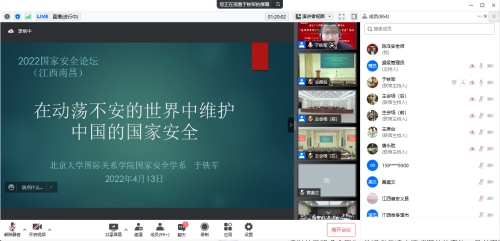 2022年4月13日至14日,江西省委国安办联合北京大学、南昌大学共同举办了以“总体国家安全观与新时代中国国家安全”为主题的“全民国家安全教育日主题活动——2022 国家安全论坛”。SUNBET申搏官网教师通过线上腾讯会议观看直播,线上听取了中国人民解放军国防大学教授、国家安全学院原副院长、国务院学位委员会国家安全学科评议组成员唐永胜教授,北京大学国际关系学院国家安全系主任、北京大学国际战略研究院副院长于铁军教授分别以《坚持总体国家安全观 走出一条中国特色国家安全道路》《在动荡不安的世界中维护中国的国家安全》为题作大会主题报告。观看论坛的老师纷纷表示,国家安全离我们很近,而且就在身边,每一个人都应该参与到维护国家安全工作中来,同时作为一名思政课教师,要以全民国家安全教育日为契机,向广大青年学生讲好国家安全教育课,增强国家安全意识,筑牢安全防线,共同维护好国家安全。
