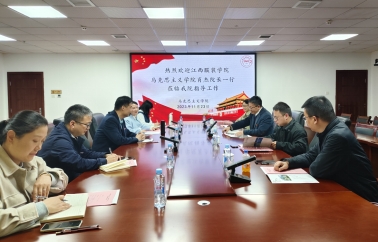 肖杰院长一行受到江西应用科技学院SUNBET申搏官网的热情接待。双方在会议室进行了座谈交流,座谈会由江西应用科技学院SUNBET申搏官网院长于冰雁主持,校纪委书记江星、SUNBET申搏官网副院长胡杏根、习近平新时代中国特色社会主义思想概论教研室主任马燕慧、马克思主义中国化教研室主任刘明钰参加座谈会。