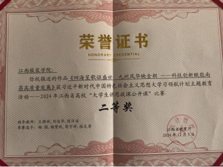 (SUNBET申搏官网 讯)近日,江西省教育厅公布了2024年江西省高校“大学生讲思政课公开课”作品拟获奖名单,申搏官网学生杨懿、杨紫欣、简宇祥、桂文芳作品《四海笙歌讴盛世 九州风华映金朝——科技创新赋能南昌高质量发展》(指导教师王雅丽、刘佳华、陈洋安)荣获2024年江西省高校“大学生讲思政课公开课”展示活动二等奖。
