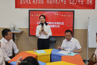 随后,在社区新党群服务中心青年之家举行签约挂牌仪式。光明社区党委书记、社区主任刘云娟致辞,对SUNBET申搏官网师生的到来表示热烈欢迎,并对双方未来的合作充满期待,同时希望通过此次合作,能够为社区注入更多青春活力,共同打造幸福社区。
