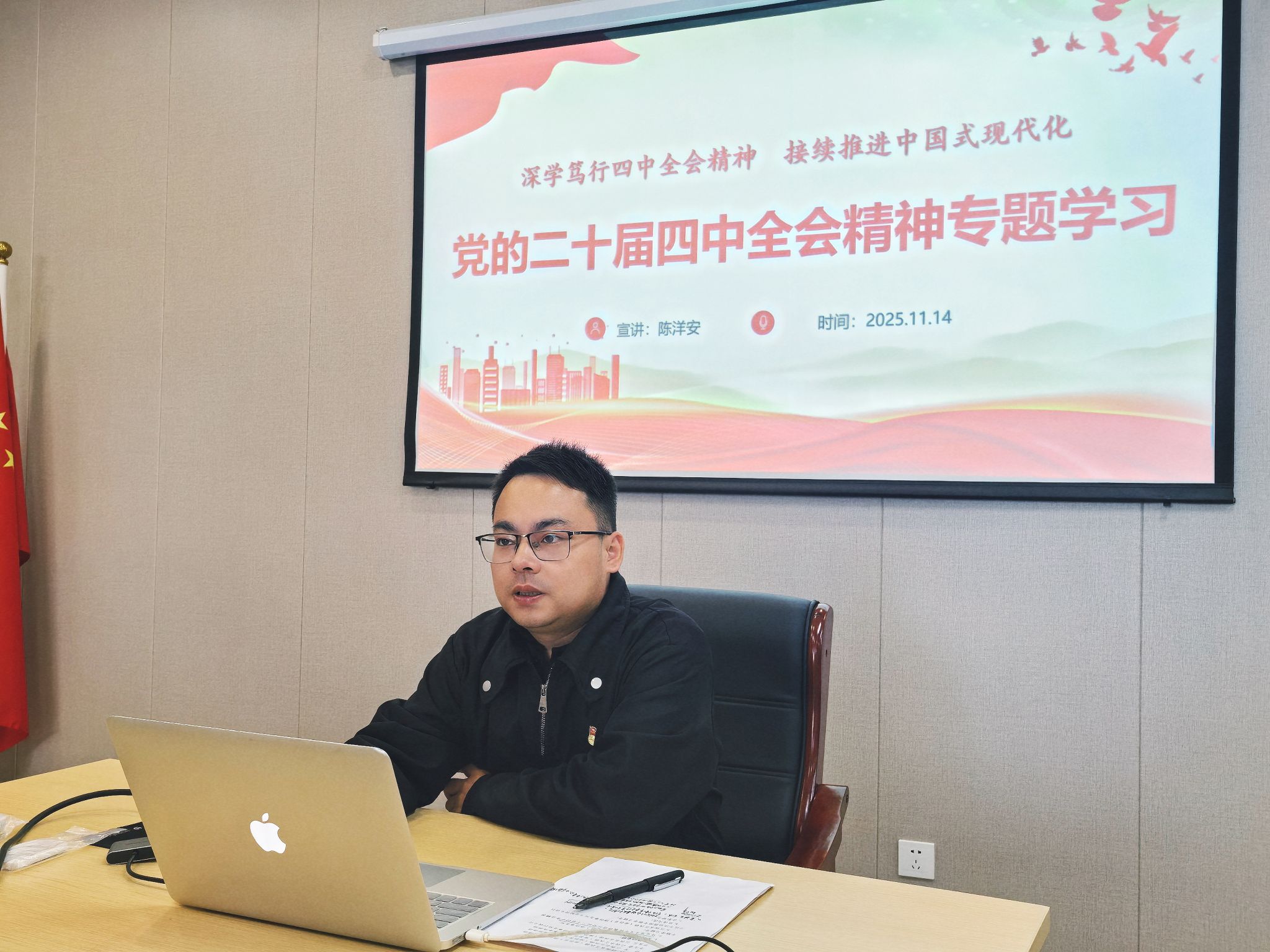在学习交流环节,SUNBET申搏官网党总支副书记陈洋安带领大家深入学习党的二十届四中全会精神。他指出,党的二十届四中全会聚焦全面依法治国、推进国家治理体系和治理能力现代化作出重大部署。他强调,青年学生既要学好专业知识,更要筑牢法治根基,将个人理想追求融入国家法治建设大局,努力成为尊法学法守法用法的新时代青年,为推进全面依法治国贡献青春力量。