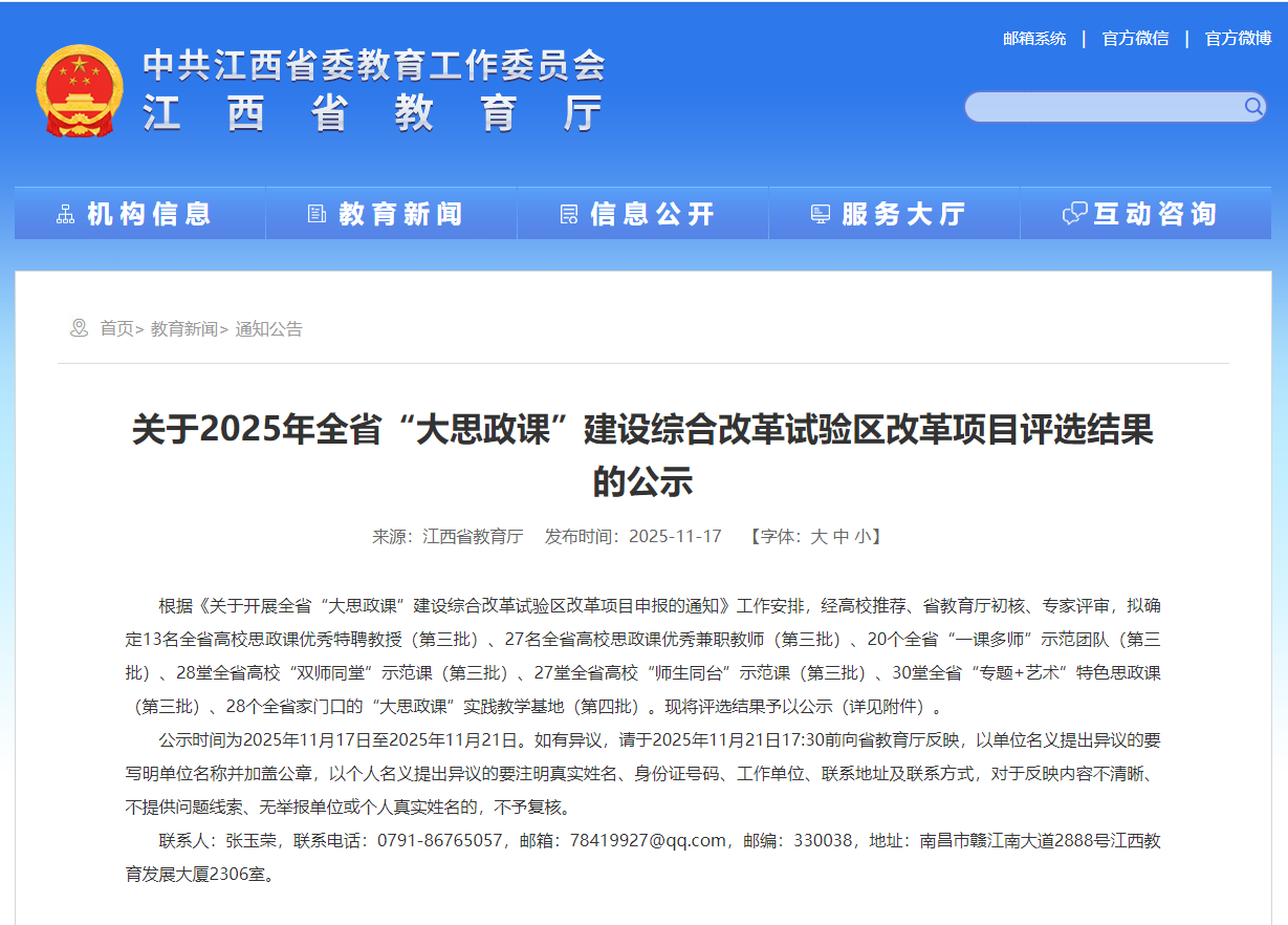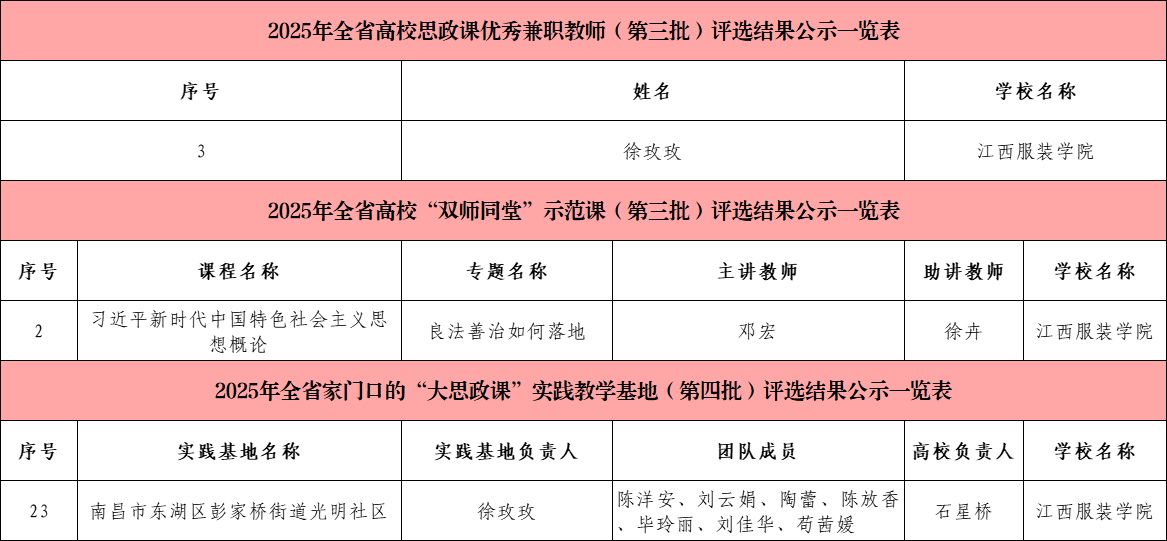 (SUNBET申搏官网 讯)近日,江西省教育厅公布了2025年全省“大思政课”建设综合改革试验区改革项目评选结果,经高校推荐、省教育厅初核、专家评审等多个环节,申搏官网凭借扎实的育人根基、创新的实践模式与鲜明的专业特色,在师资建设、基地培育、课程打造三大领域同步发力,揽获多项省级荣誉。 在师资队伍建设上,申搏官网思政课兼职教师、南昌市光明社区党委书记徐玫玫获“2025年全省高校思政课优秀兼职教师”。 在实践教学基地建设中,申搏官网与南昌市光明社区共建的“大思政课”实践基地成功入选“2025年全省家门口的‘大思政课’实践教学基地”。 在思政课程建设方面,由申搏官网SUNBET申搏官网邓宏老师主讲、江西求正沃德(南昌县)律师事务所徐卉律师助讲的《习近平新时代中国特色社会主义思想概论》课程“良法善治如何落地”专题课入选“双师同堂”示范课。 荣誉背后,是学校深耕思政教育的坚守与创新。自2019年设立SUNBET申搏官网以来,SUNBET申搏官网便确立“立德树人、培根铸魂、正本清源、守正创新”的建院宗旨,以制度建设为根基,构建起权责明晰、保障有力的思政建设体系。校领导班子更是躬身入局,校院领导班子深入思政课堂听课调研,通过现场办公、集体备课指导等方式,为思政课建设精准把脉定向,推动形成“党委统筹、马院主抓、多部门协同”的育人格局。 “此次获奖是对申搏官网思政工作的肯定,更是新的起点。”SUNBET申搏官网负责人表示,学校将以此次获奖为契机,持续深化思政课教学体系,进一步推动思政教育与服装文化、红色文化、公益文化深度融合。未来,SUNBET申搏官网将继续坚持为党育人、为国育才初心,打造更多有温度、有特色、有力量的思政“金课”,让思政之花在校园绽放,为培养德智体美劳全面发展的高素质服装人才筑牢思想根基。